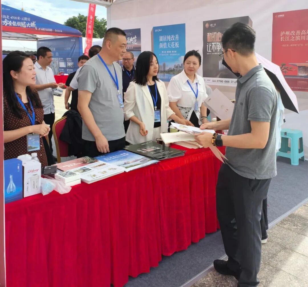 在本次活动中,主舞台大屏播放了泸州城市推荐宣传片;设立了30平方米的“中国酒城·醉美泸州”展厅,展出了泸州市主城区七个优秀开发项目;接待了包括中房协、云南省住建厅、四川省住建厅、德宏州等参会领导及当地市民的到访,协会工作人员就泸州地域优势、资源优势、产业优势、未来发展等进行推荐性讲解;向到访客人详细介绍了参展项目的置业优惠政策;发放从泸州带去的特色礼品、各种宣传资料千余份。